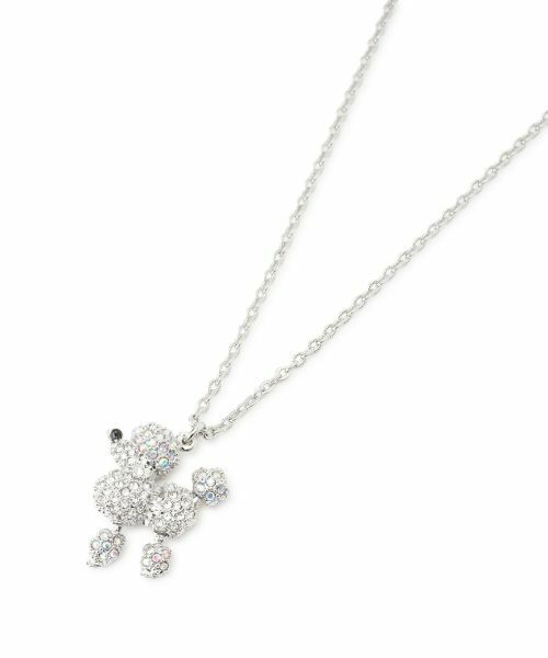 可愛らしいトイプードルモチーフのペンダントネックレス。見る人の心を和ませるトイプードルの姿を、繊細なビジューで表現しました。全身に散りばめられた煌めくビジューが、光を反射するたびに華やかに輝き、胸元をパッと明るく見せてくれます。細めのチェーンはデコルテを上品に演出し、様々なネックラインのトップスと好相性です。アジャスターで簡単に長さ調整ができるため、その日の気分やコーディネートに合わせて自在にアレンジが可能。