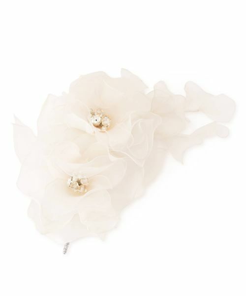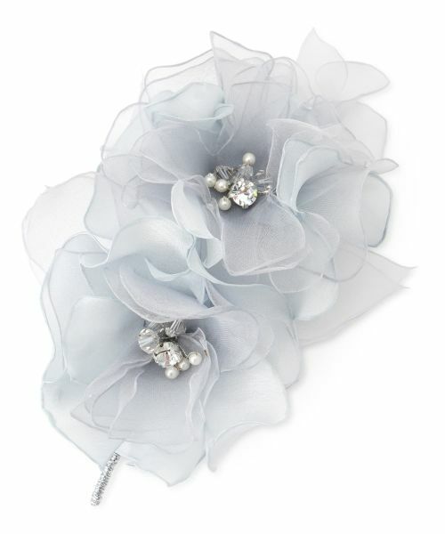 繊細なシルクオーガンジーを贅沢に重ねて作られた、美しいコサージュ。ふんわりとした透明感と軽やかさを備え、光をまとうたびに表情を変え、優美な輝きを放ちます。幾重にも重ねられた花びらは、まるで本物の花が咲き誇るような立体感と息をのむほどの繊細さを表現しています。中央にはクリスタルがあしらわれ、上品な煌めきのアクセントを添えています。卒業式や入学式、結婚式といったフォーマルなシーンでのスーツやドレスの胸元を格上げします。