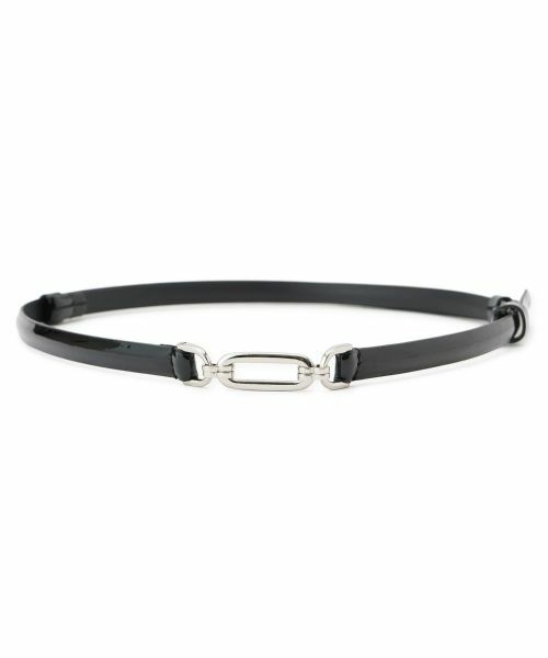 これからの季節のスタイリングに、洗練された個性を添えるナローベルト。モダンなチェーンモチーフのバックルが光り、ウエストマークするだけで旬の表情を演出。表側は上質な牛革を使用しており、艶やかな光沢と使うほどに馴染む質感が魅力。裏側は合成皮革で仕立てられているため扱いやすく、デイリーに気兼ねなくお使いいただけます。ワンピースやチュニックのウエストマークにはもちろん、シンプルなパンツやスカートに合わせれば、着こなし全体を引き締める効果も。細身のデザインなので、主張しすぎずに上品なアクセントとして活躍します。