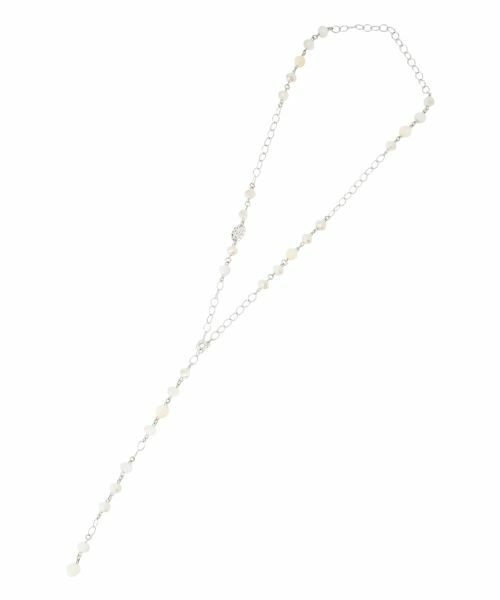 ガラス調のパーツとチェーンの組み合わせが、絶妙なバランスを生み出すネックレス。空間を生かしたデザインで軽やかに身に着けられ、日常のスタイルによく合います。Y字のシルエットで、首元をすっきりと見せる効果も期待できます。