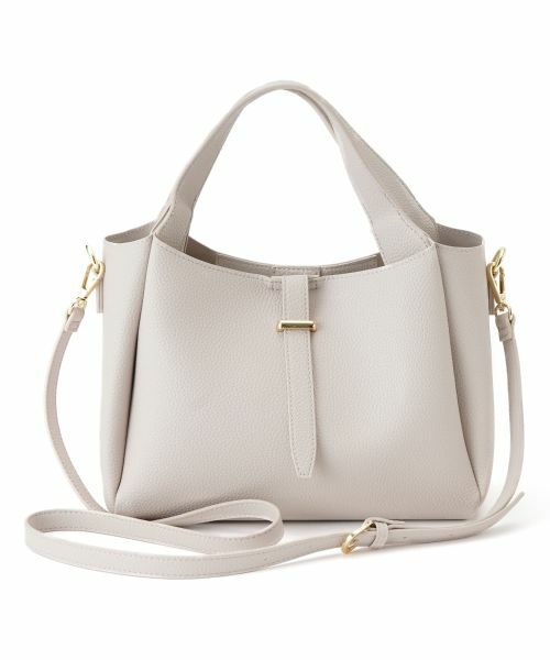 オンオフ問わず幅広いシーンに寄り添う、上品な2WAYトートバッグ。シボ感のあるリッチな風合いの合成皮革と、きらりと光るゴールドの金具が高級感を演出します。取り外し可能なストラップ付きで、その日の気分や服装に合わせてスタイルの変更が可能。マチが広く、長財布やポーチなど日常の必需品がしっかり収まるサイズ感も魅力です。通勤から休日のお出かけまで、シーズンレスで活躍する頼れるアイテムです。