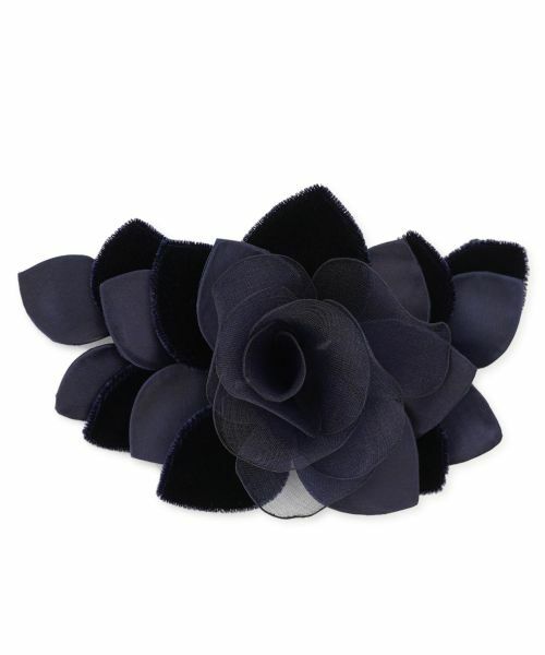 セレモニーの装いを、より一層華やかに引き立てるエレガントなコサージュ。ベルベットのような光沢のある花びらと、透け感のあるオーガンジーの花びらを丁寧に重ね、立体感豊かに仕上げました。深みのあるシックなカラーが、大人の女性らしい上品さと落ち着きを演出。ジャケットやワンピースの胸元に添えるだけで、コーディネートがぐっと格調高い印象になります。大切な一日を美しく彩る、とっておきのアイテムです。