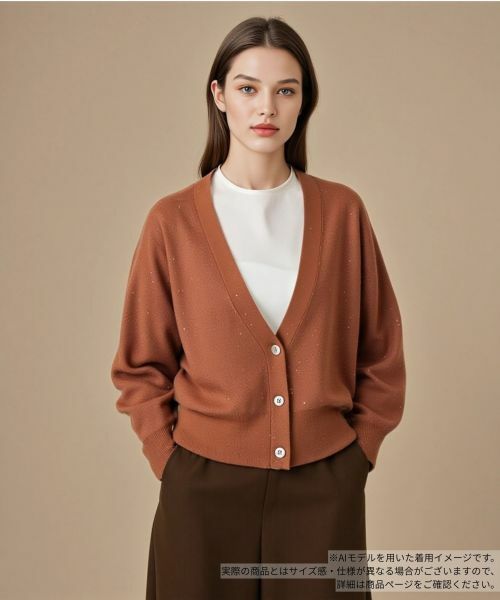 まるで夜空の星屑をちりばめたように、繊細な輝きを放つVネックカーディガン。スパンコールを練り込んだ糸で編み立てることで、派手すぎず、上品かつ奥行きのある煌めきを実現しました。ゆったりとしたリラクシーなシルエットで、軽やかな羽織りとしてはもちろん、ボタンを留めてプルオーバー風の着こなしも素敵。いつものコーディネートにプラスするだけで、ぐっと華やかな印象に仕上げてくれる一枚です。