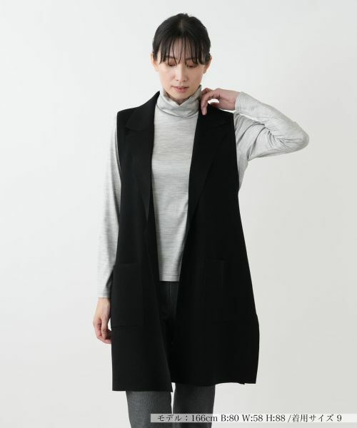 いつものコーディネートにプラスするだけで洗練された印象になるロングジレ。さっと羽織れる前留めなしのデザインがこなれた抜け感を演出。縦のラインを強調するIラインシルエットは、スタイルアップ効果も抜群。伸縮性のあるアセテート×ナイロンのやや薄手のファブリックで快適な着心地が魅力です。季節の変わり目にカットソーからブラウスまで、様々なトップスと合わせてお楽しみいただけます。
