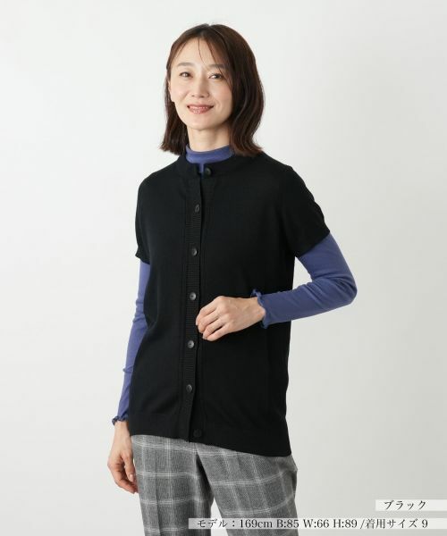 一枚あるとコーディネートの幅がぐっと広がる、着回し力抜群の半袖ニットカーディガン。フロントボタンを全て留めれば上品な半袖ニットとして、ボタンを開ければ羽織りベスト感覚でと2WAYの着こなしが楽しめます。程よい厚みのハイゲージニットは肌寒い季節の変わり目に最適。ブラウスや長袖カットソーとのレイヤードもバランスよく決まる、秋のワードローブで活躍間違いなしのアイテムです。------------------------------------着用シーズン:秋伸縮性:あり透け感:なしポケット:なし生地の厚さ:やや厚手-------------------------------------※商品の色味は、撮影場所や光のあたり具合、お客様のお使いの機器により色味が違って見える場合がございます。予めご了承ください。家庭洗濯不可漂白不可タンブル乾燥不可アイロン低温160℃まですべての溶剤でドライクリーニング弱ウェットクリーニング不可