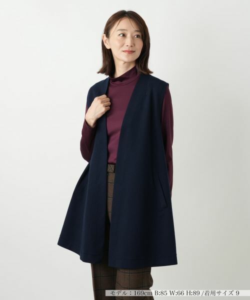 いつものスタイルにさっと羽織るだけで、こなれた縦長シルエットが完成するノーボタンベスト。フロントの流れるようなドレープが優雅な雰囲気を演出し、ボディラインをナチュラルにカバーします。程よく厚みがありながらも、伸縮性に優れた素材でリラックス感のある着心地を感じられます。落ち着いたシックな色合いでパンツにもスカートにも気軽に合わせやすく、秋のレイヤードスタイルに欠かせないアイテムです。