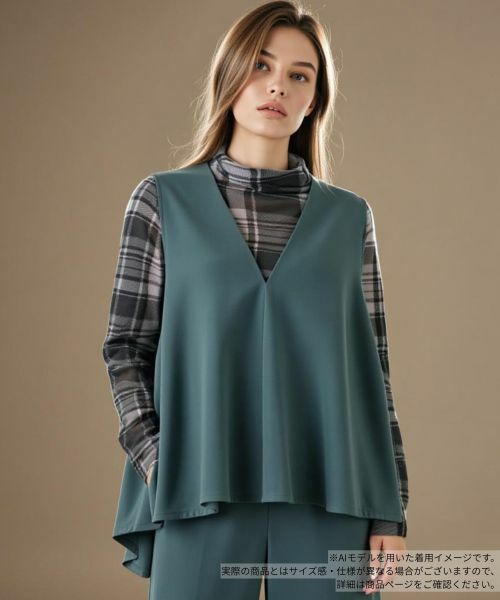ふわりと広がるAラインシルエットが華やかなフレアベスト。顔周りをシャープに見せる深めのVネックがすっきりとした抜け感をプラスし、レイヤードするインナーの存在感を引き立てます。伸縮性と美しい落ち感のある素材なので、動きやすさも着心地も抜群。シンプルなカットソーからブラウスまで、インナー次第で様々な表情に。同素材のパンツと合わせた、トレンド感のあるセットアップスタイルもおすすめです。バックファスナーにより開閉が可能。