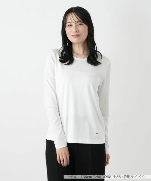 フロント&バックのボディに肌触りのよい柔らかなコットンレーヨン、スリーブ部分には繊細なチュール素材を使用した異素材コンビネーションのカットソー。腕がほんのり透けるデザインがカジュアルな中に大人の女性らしさと抜け感を演出します。ストレスフリーの着心地で、デイリーユースにぴったりの一枚。ベストやワンピースのインナーとして、スリーブ部分のデザインをアクセントにしたレイヤードスタイルもおすすめです。