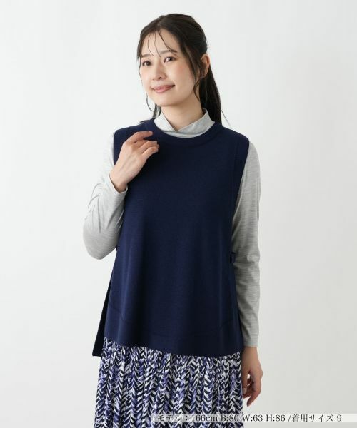 大胆に入ったサイドスリットが軽やかな抜け感をプラスするニットベスト。前後差のあるヘムラインも、こなれ感を演出するポイント。サイドに飾りストラップをあしらい、シンプルなデザインに程よいアクセントをプラス。滑らかで伸縮性のあるニット素材なので着心地も快適です。シャツやワンピースといった様々なアイテムとのレイヤードを楽しめる、いつものスタイルをアップデートしてくれるトップスです。