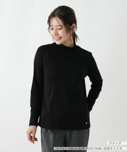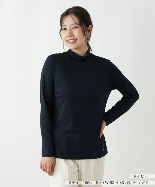上質なコットンならではの滑らかな肌触りが魅力のハイネックカットソー。首元を上品に見せるハイネックは、ジャケットやカーディガンのインナーとしても最適。程よく身体にフィットするシルエットで着回し力も抜群です。伸縮性のある素材で動きやすく、ストレスフリーな着心地を実現しました。やや薄手なのでレイヤードしてももたつかないのも嬉しいポイント。裾にあしらった小さなロゴプレートがアクセントに。ロングシーズン活躍する、ワードローブに欠かせない一枚です。