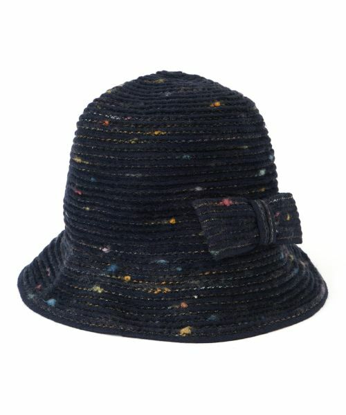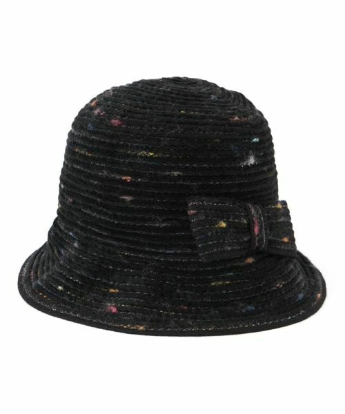 深みのある風合いの生地に、多彩なカラーネップを散りばめた表情豊かなクロッシェ。顔周りを優しく包み込むクラシカルなフォルムに、さりげなくあしらわれたリボンが大人の可愛らしさを演出。さっとかぶるだけでコーディネートに華やかさと上品な印象をプラスし、温かみのある素材感は秋冬のスタイリングにぴったりです。お出かけが多くなるシーズンのコーデを、素敵に格上げしてくれるアイテムです。