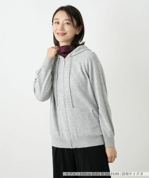 上質なカシミヤをブレンドした、大人のためのリッチなニットパーカ。カシミヤならではの滑らかな肌触りと、ふんわりと軽く暖かな着心地が魅力です。フロントジップ仕様なので、季節の変わり目にはカーディガン感覚の羽織りとしても活躍。程よくゆとりのあるシルエットで重ね着もしやすく、立体的なフードが顔周りにこなれたアクセントを添えます。カジュアルなアイテムながらも素材の上質さが際立ち、着こなしをクラスアップしてくれる一着です。