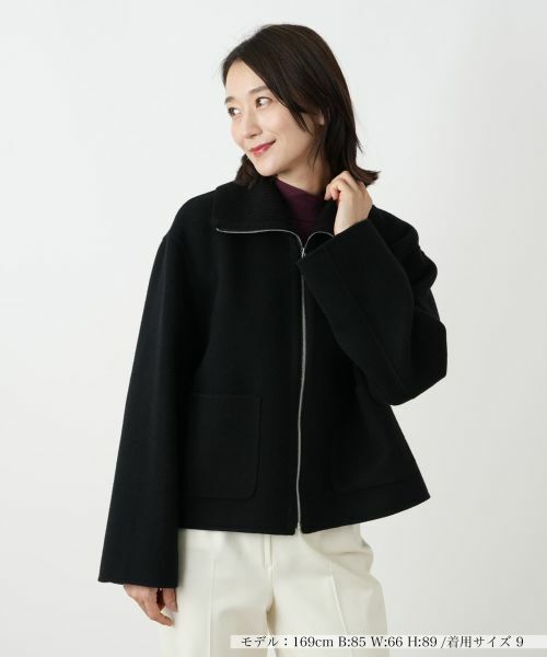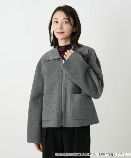 首元を暖かく包み込む、襟のニット切り替えがポイントになったジップジャケット。顔周りに柔らかなニュアンスを添える大きめのリブニットカラーは、マフラー要らずの暖かさで、見た目にも着心地にもぬくもりをプラス。毛にコットンをブレンドした厚手の生地ながら、一重仕立てにすることですっきりと軽やかに羽織れるのが魅力。コンパクトなショート丈のシルエットは、様々なボトムスとバランスが取りやすく、スタイルアップ見せ効果も期待できそうです。