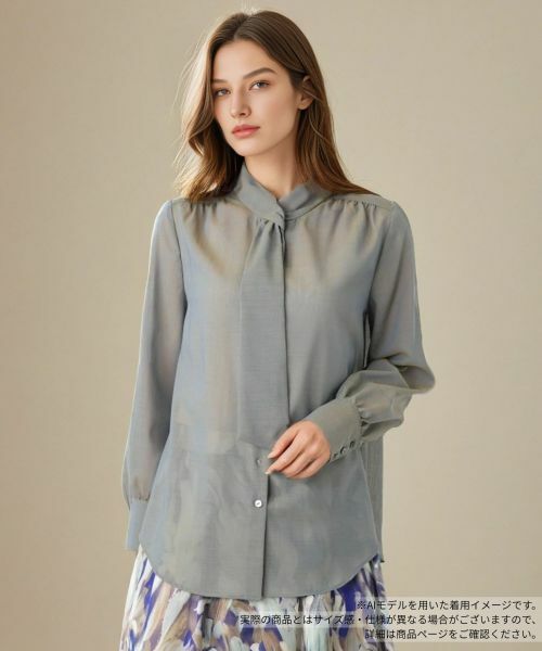 上品な透け感と、滑らかな生地が大人の女性らしさを引き立てるボウタイブラウス。肩や背中に寄せたタック&ギャザーが優雅なドレープを描き、ふんわりとした柔らかなシルエットを演出します。きちんと感のあるカフスが、全体の印象を引き締めるクラシカルなアクセントに。一枚で着映えするのはもちろん、ジャケットのインナーとしても活躍し、オケージョンから通勤まで幅広く着回せるエレガントなトップスです。