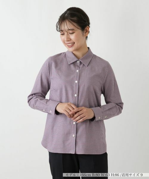 これからの季節のコーディネートに活躍する、細やかなチェック柄のブラウス。スタンダードな襟付きで、カジュアルからきれいめまで幅広く着回せます。やや薄手ながら肌触りの良いコットン素材を使用し、透け感を気にせず着用できるのが嬉しいポイント。背面にタックを施すことで、動きやすさと程よい立体感をプラスしました。一枚で着るのはもちろん、ニットやベストのインナーとして、ロングシーズン活躍します。