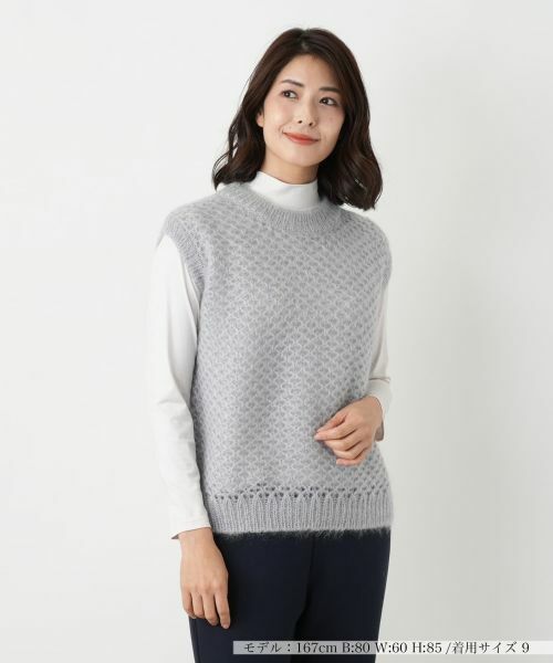 格子状の立体的な編地が、表情豊かな佇まいを生み出すニットベスト。ふんわりとした柔らかな起毛感が見た目にも暖かみをプラスします。伸縮性に優れたやや薄手のニット地は、秋冬のレイヤードスタイルに最適。すっきりとしたクルーネックはシャツやタートルネックとも相性がよく、多彩なレイヤードコーディネートを楽しめます。いつものスタイリングに重ねるだけで、着こなしの幅を広げてくれるアイテムです。