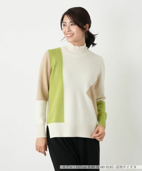 大胆なカラーブロックデザインが、着こなしの主役になるハイネックニットです。毛の暖かみにシルクの滑らかさと上品な光沢感をブレンドした、上質なニットの素材感が魅力。伸縮性に優れたやや薄手のニット地で、秋口の一枚着として快適にお召しいただけます。首元に優しく沿うハイネックが顔周りをすっきりと上品な印象に引き立て、裾にはスリットを施し、軽やかな抜け感をプラス。ジャケットやコートとのレイヤードも楽しめます。------------------------------------着用シーズン:秋伸縮性:あり透け感:ありポケット:なし生地の厚さ:やや薄手裏地:なし-------------------------------------※商品の色味は、撮影場所や光のあたり具合、お客様のお使いの機器により色味が違って見える場合がございます。予めご了承ください。家庭洗濯不可漂白不可タンブル乾燥不可アイロン低温160℃まで石油系溶剤ドライクリーニング弱ウェットクリーニング不可