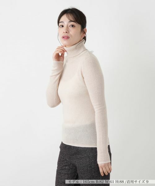 上質なカシミヤを贅沢に使用した、格別の肌触りと暖かさを誇るスタイリッシュなタートルネックニット。ニット地はやや厚手で保温性があり、ストレッチ性も備えており、身体に優しくフィットし快適な着心地を実現します。裾と袖口に施された手の込んだ刺繍がアクセントになり、フェミニンな上品さをプラス。シンプルで合わせやすく、一枚での着こなしはもちろん、ジャケットやコートのインナーとしてもおすすめです。------------------------------------着用シーズン:冬 伸縮性:あり透け感:ありポケット:なし生地の厚さ:やや厚手裏地:なし-------------------------------------※商品の色味は、撮影場所や光のあたり具合、お客様のお使いの機器により色味が違って見える場合がございます。予めご了承ください。家庭洗濯不可漂白不可タンブル乾燥不可アイロン低温160℃まで石油系溶剤ドライクリーニング弱ウェットクリーニング不可