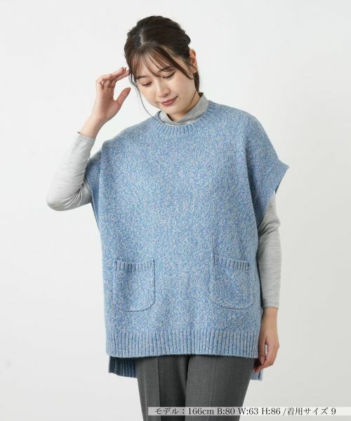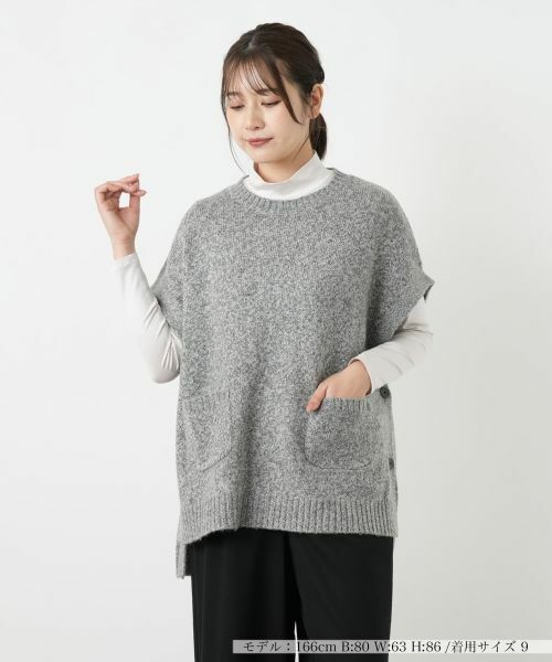 繊細なラメをミックスした、表情豊かな編み地が目を惹く厚手のニットベスト。ゆったりとしたボックスシルエットに、サイドボタンで絶妙な抜け感をプラス。ボタンの開閉でスリットの深さを調整でき、ボリュームのあるインナーとも好相性です。前後差のある着丈が腰回りをさりげなくカバーし、フロントのパッチポケットが愛らしいアクセントに。いつものトップスに重ねるだけで、旬のレイヤードスタイルが完成するアイテムです。