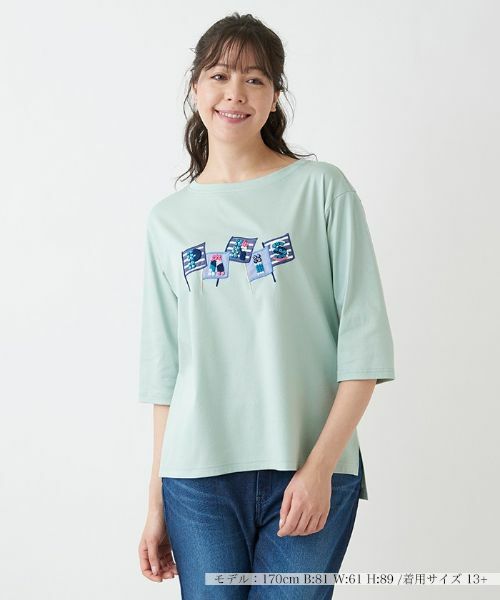 異素材使いと刺繍で描いたキュートなフラッグデザインが、遊び心をアピールするアクセントになった5分袖カットソー。ざっくりとしたオーバーサイズなシルエットだからこなれ感も満載。パンツとラフに着こなしたい1枚。※定価(税込)は、2022年06月29日のセール開始前の店舗における販売価格です。手洗い可漂白不可タンブル乾燥不可つり干し(日陰)アイロン低温210℃までドライクリーニング不可ウェットクリーニング(弱い処理)