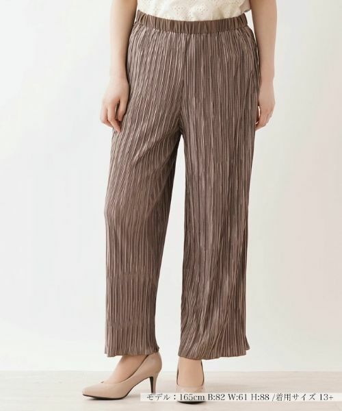 ワイドプリーツパンツは、薄手のシルキータッチのポリエステルニット素材。生地方向に対して横にプリーツ加工を施して縦使いした縦横2WAYストレッチです。しわになりにくく、ウエストゴム仕様のリラックス感のある穿き心地が特長です。※ウォッシャブル対応※定価(税込)は、2022年06月29日のセール開始前の店舗における販売価格です。手洗い可酸素系漂白可タンブル乾燥不可つり干し(日陰)アイロン不可石油系溶剤ドライクリーニング弱ウェットクリーニング(弱い処理)