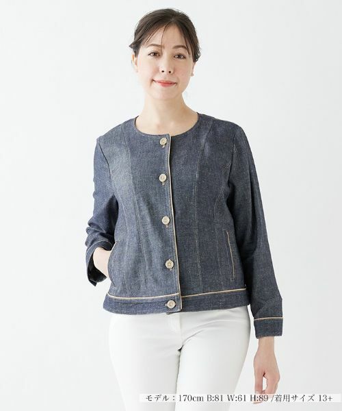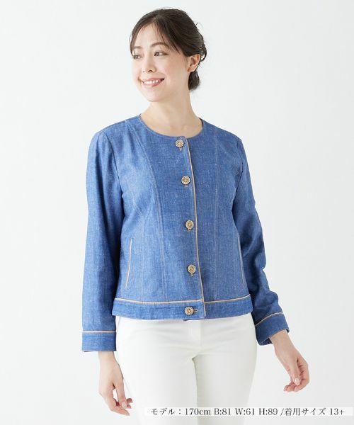 綿麻ブレンドのナチュラルな風合いが美しいノーカラージャケット。ネックラインや袖口など細部に配色パイピングを利かせ、上品さのあるアクセントに。ライトカラーのワイドパンツなど、きれいめアイテムと合わせてもバランスよく仕上がります。※定価(税込)は、2022年06月29日のセール開始前の店舗における販売価格です。手洗い可酸素系漂白可タンブル乾燥不可つり干し(日陰)アイロン低温160℃まで石油系溶剤ドライクリーニング弱ウェットクリーニング(弱い処理)