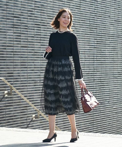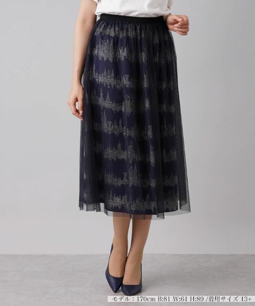 美しい様々なアーキテクチャーをモチーフにした総柄プリントのミディ丈スカートに、透け感たっぷりのオーバースカートを重ねた2枚セット。それぞれ単品でも活躍してくれるから、これ1着でスタイリングの幅が広がります。大人の女性らしいAラインシルエットでエレガントな佇まいに。