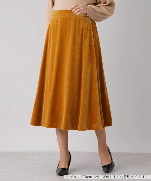 しなやかな落ち感と上質な光沢が美しい、膝下ロング丈のベロアスカート。緩やかに広がるAラインシルエットで品のよさをキープしているから、大人のデイリースタイルにもエレガントに馴染んでくれるはず。旬の素材のスカートは1点投入でシーズンの深まりを演出できそう。サイドファスナーにより着脱もスムーズに行えます。