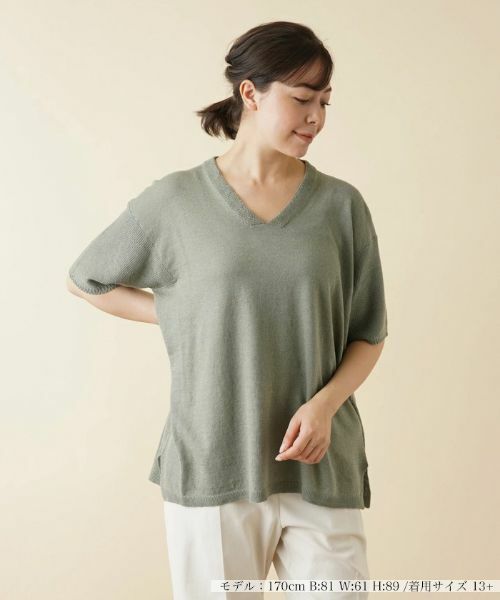 通気背に優れたさらりとした肌触りのニット素材を使用。暑い季節も着心地爽やかな五分袖プルオーバーは、ゆるりとした落ち感シルエットでこなれた雰囲気もたっぷり。すっきり開いたVネックが首元のキレイ見せを叶えます。※定価(税込)は、2023年06月29日のセール開始前の店舗における販売価格です。家庭洗濯不可漂白不可タンブル乾燥不可アイロン低温210℃まで石油系溶剤ドライクリーニング弱ウェットクリーニング不可
