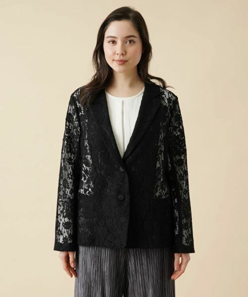 透け感のある繊細なフラワー模様のレースを使用した、エレガントな魅力を漂わせるブレザー。端正なフォルムのカラー&ラペルが上品な佇まいを演出。シルエットには程よくゆとりをもたせ、リラクシーな着心地を叶えました。前立てにはサテン素材のクルミボタンを採用し、細部までこだわりが感じられるデザインに。シンプルなパンツやスカートを合わせるだけで技アリのコーディネートが楽しめます。