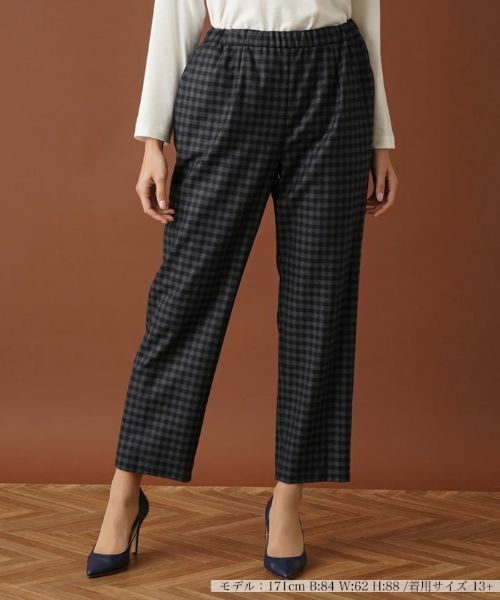 サイズ:17+,ウエスト82cm,ヒップ114cm,総丈98.5cm,股上32.5cm,股下69.5cm,渡り71cm,裾幅42cm