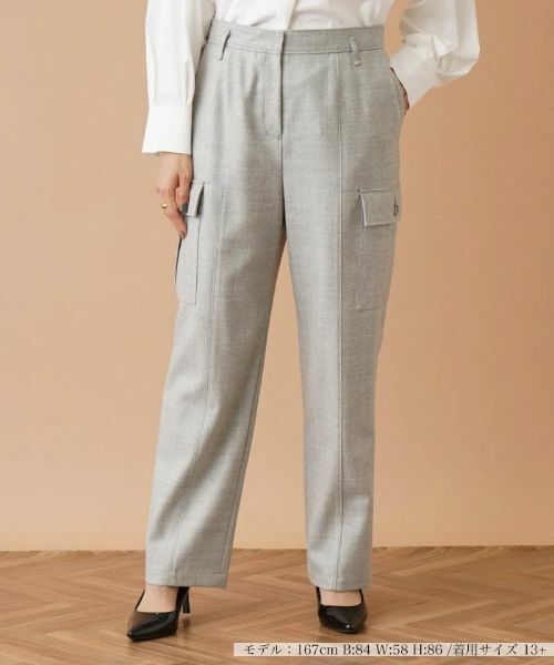 股上を深めに設定した、ハイウエストデザインのスリムカーゴパンツ。一般的にワーク&スポーティなイメージの強いカーゴパンツですが、シンプルかつ細身のシルエットで仕上げ、きれいめな着こなしで楽しめるようにデザインしました。滑らかな表面感が特徴的なウール生地を使用し、快適な穿き心地を実現しています。トップスとコーディネートしやすく、汎用性にも優れた一本です。ボタン&ホック、ファスナーにより開閉が可能。