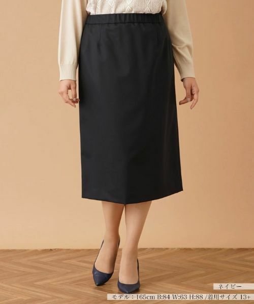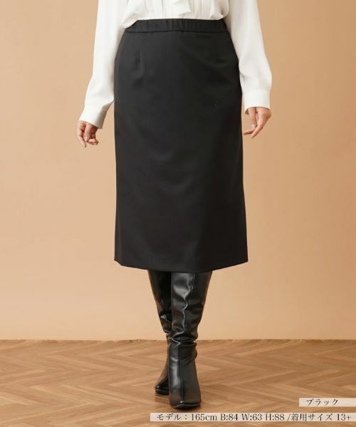 トップスを選ばずに合わせやすいベーシックなミディ丈のタイトスカート。すっきりとしたシルエットが洗練されたスマートな立ち姿を演出。ウエストに伸縮性をもたせているので適度なフィット感があり、穿き心地も快適です。後ろ裾両サイドにはスリットを入れ、抜け感を作りつつ、スムーズな足捌きにも配慮しました。サイドスナップボタン&ホック、ファスナーにより着脱が可能です。