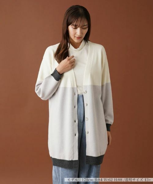 コントラストの効いた配色デザインがさりげなくセンスを引き立てる、セミロング丈のニットカーディガン。シャープなVネックがインナーを覗かせ、絶妙なバランスの抜け感を演出。フロントには味わい深い表情のマーブルボタンを採用し、細部までこだわりの仕上がりに。ハイゲージで丁寧に編み込んだニットの優しい温もりを感じられる一枚です。