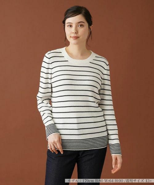 袖口と裾のボーダー柄のピッチに変化を持たせた、クルーネックのリブニットプルオーバー。しなやかな肌触りで着心地も快適です。すっきりとしたフィット感でもたつかず、ジャケットとのレイヤードももたつかずにスマートに着こなせます。飽きのこないスタンダードなデザインなので、ワードローブに一枚あると便利なアイテムです。