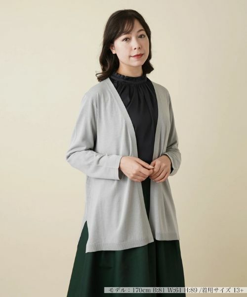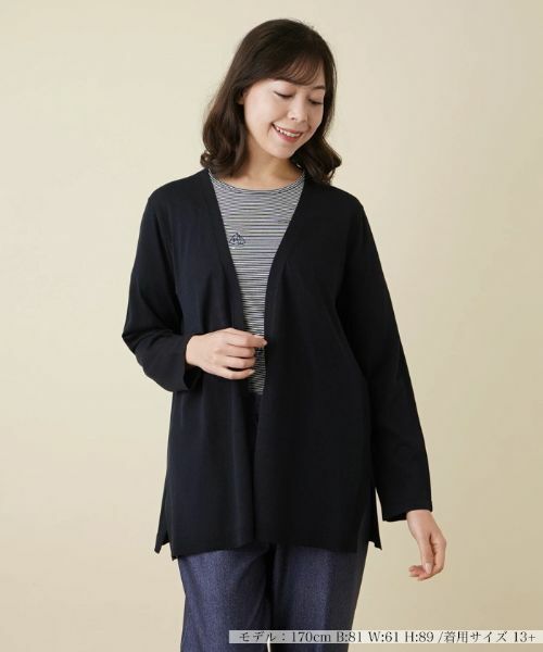 ハイゲージで丁寧に編み込んだ繊細かつ優しいニットの温もりが感じられるカーディガン。フロントはノーボタンですっきりとした印象に。裾には深めのスリットを入れ、動きやすさにも配慮しています。ベーシックな無地でコーディネートしやすく、着回し力に優れたアイテムです。ニットやカットソーなどのインナーに重ねるだけで、カジュアルな中にもエレガントな雰囲気を漂わせるレイヤードスタイルが完成します。