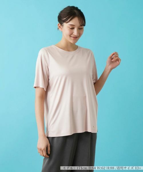 柔らかく繊細な光沢を湛えるシルク仕立ての半袖カットソー。程よくリラックスしたシルエットで、気軽に着こなしやすくデザインされています。一枚での着用はもちろん、プレーンなシャツやジャケットのインナーとして取り入れることで、これからの季節のスタイルに上品な華やかさを加えることができます。シンプルなので様々なシーンにフィットし、着回し力に優れたトップスです。バックネックの涙あきはループボタンにより開閉が可能。------------------------------------着用シーズン:初夏 伸縮性:あり透け感:なしポケット:なし生地の厚さ:薄手お取扱い方法:ウォッシャブル(手洗い可)-------------------------------------※商品の色味は、撮影場所や光のあたり具合、お客様のお使いの機器により色味が違って見える場合がございます。予めご了承ください。手洗い可漂白不可タンブル乾燥不可つり干し(日陰)アイロン低温160℃まで石油系溶剤ドライクリーニング弱ウェットクリーニング(弱い処理)