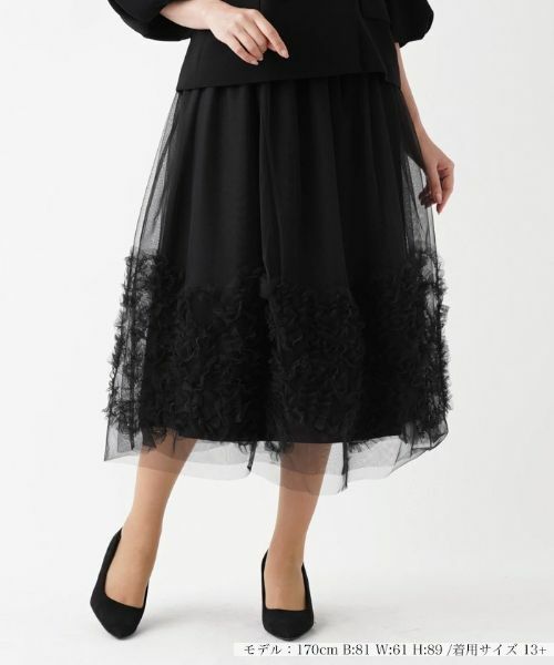 ロマンティックなコーディネートを演出するチュールスカートに、フリリーなディテールをプラス。より甘くフェミニンに仕上げた1着は、ブラウスはもちろんTシャツと合わせても◎。意外にも着まわし力のあるアイテムです。