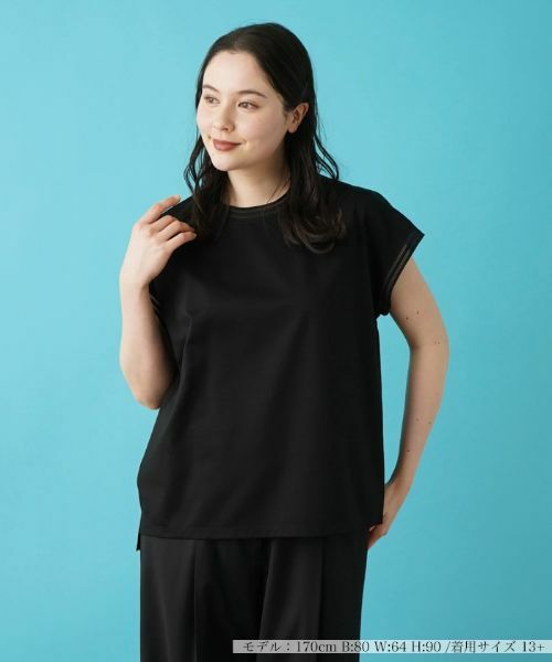 ネックラインと袖口のシアーな異素材切り替えが、シーズンらしい涼やかさを醸し出すフレンチスリーブカットソー。程よいゆとりをキープしつつもどんなボトムスとも合わせやすい絶妙なシルエットで、着回しにも最適な一品。