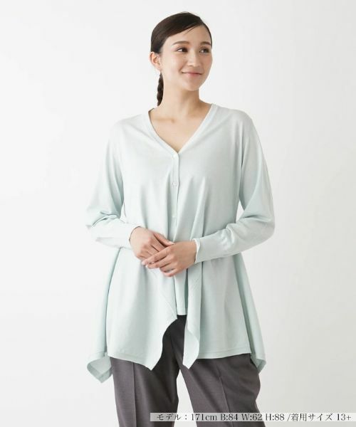 ふわりと広がるシルエットとドラマティックに仕上げたイレギュラーヘムが、唯一無二の表情を演出してくれるVネックカーディガン。コットンとシルクをブレンドした滑らかな素材感で、ワンランク上の着心地を堪能できます。※定価(税込)は、2024年6月28日のセール開始前の店舗における販売価格です。家庭洗濯不可漂白不可タンブル乾燥不可アイロン低温160℃まで石油系溶剤ドライクリーニング弱ウェットクリーニング不可