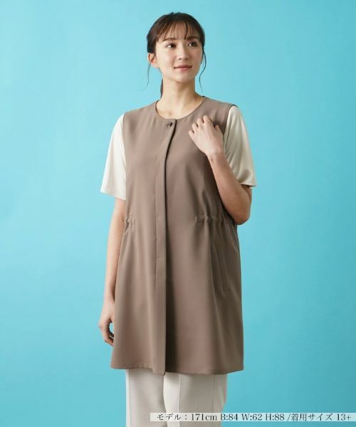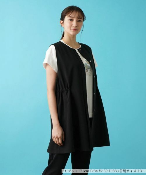 エフォートレスな雰囲気でゆったりとスタイリングできるベスト。フロントは比翼仕立てでスマートなルックスに仕上げており、ウエストのドローコードでフィット感の調整も自在です。ミニマルなデザインで多彩なアイテムとのコーディネートもスムーズにマッチし、長めの丈が身体のラインをさりげなくカバー。シンプルシックなデザインで使いやすく、日常使いのユーティリティ性も兼ね備えた頼りになる一着です。