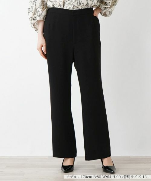 裾に向かってさりげなく広がるシルエットが、レッグラインを美しく引き立てるロングパンツ。股上を深めに設定し、ストレスフリーのはき心地を実現しています。伸縮性に優れたストレッチ素材で仕立てているから優しいはき心地でアクティブな動作にもしっかり対応します。バックウエストはゴム仕様とし、程よいフィット感をもたせました。ベーシックな無地でトップスともコーディネートしやすい一本です。