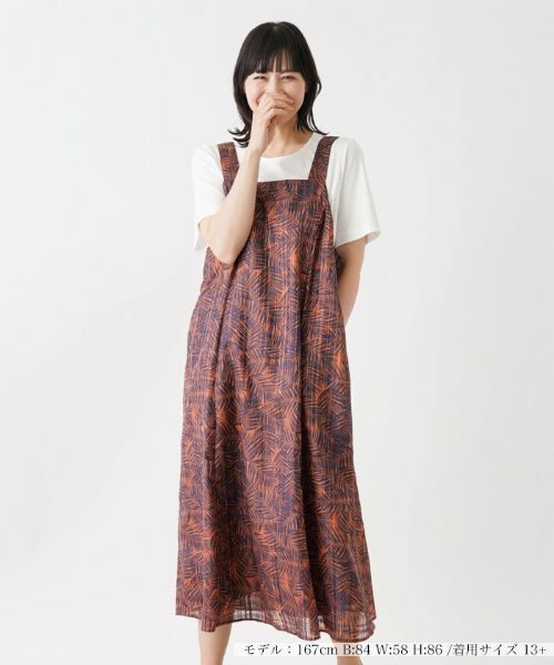 さらりとした素材に施されたリーフ柄が目を惹く、総柄のジャンパースカート。絶妙なバランスで広がりを持たせたエアリーなシルエットも相俟って、季節らしい軽やかな印象を与えます。ノーカラーブラウスやシンプルなカットソーをインして着るだけで上品なまとまりのあるスタイルが完成。タウンカジュアルからバカンスまで春夏シーズンの多彩なシーンに映える一着は、ワードローブに持っておきたいところです。サイドファスナーで開閉が可能。