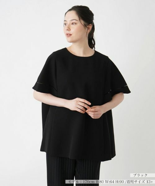 リラックス感溢れる、ゆったりとしたシルエットが魅力のオーバーブラウス。トリアセテートとポリエステルをブレンドしたやや薄手の生地を使用し、さらりとした心地よい肌触りを実現しています。袖口にはハシゴレースを施し、程よい抜け感を演出。バックファスナーで着脱もスムーズです。デイリーカジュアルから少しドレッシーな週末のシーンまで幅広く対応してくれそうな一枚。軽やかな素材感とエレガントなデザインが、洗練された大人のスタイルを叶えます。