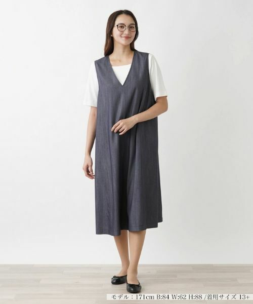 肌に優しいやや薄手の生地で仕立てたジャンパースカート。深めのVネックがさりげない抜け感を演出し、カジュアルな中にも洗練された雰囲気が漂うレイヤードスタイルをメイク。シルエットは緩やかに広がりをもたせ、リラックスした着心地を実現しました。ウエスト左右にはシンプルながら便利なスリットポケットをレイアウトしています。日常使いから少しお洒落なシーンまで、幅広く活躍してくれそうなアイテムです。バックファスナーにより着脱が可能。