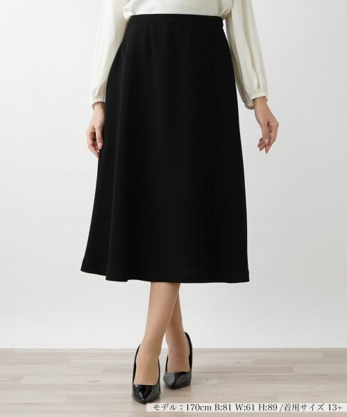 やや薄手の上品な風合いのファブリックを使い、落ち着いたシックな色合いでデザインしたミモレ丈スカート。裾に向かって広がる美しいシルエットがエレガントな華やかさを感じさせます。ウエストには伸縮性をもたせているので心地よくフィット。サイドホック&ファスナーにより開閉が可能。カットソーやブラウスと気軽にコーディネートしやすく、タックインすれば脚長見せのスタイルアップ見せ効果も狙えそうです。