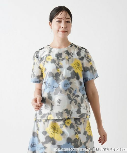ほんのりと浮かぶオブスキュアなフラワー柄の織模様が、さりげなくセンスを引き立てる半袖ブラウス。ほのかな光沢を湛える美しい風合いの生地が、コーディネートに華やかさを添えてくれる一枚。やや短めの着丈なのでミモレスカートやワイドパンツとの相性も抜群で、バランスのよいスタイリングが楽しめます。シルエットには程よくゆとりを持たせているため、さらりと着るだけでリュクス感溢れる旬の着こなしが完成します。バックファスナーにより着脱が可能。