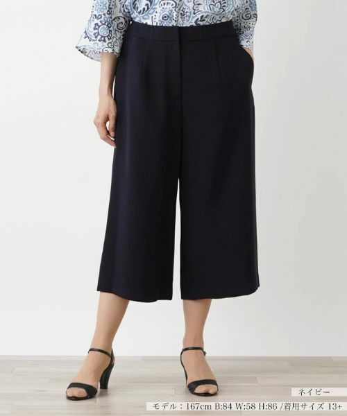 無駄な装飾を省いたミニマルなデザインのガウチョパンツ。レッグラインには程よくゆとりをもたせているため絶妙なリラックス感があり、デイリーカジュアルからアクティブなシーンまで幅広く対応します。バックウエストはゴム仕様で心地よいフィット感をもたせました。ハイウエストでスタイリングできるので、脚長見せのスタイルアップ効果も狙えそうです。バックポケットは飾りポケットとなっています。