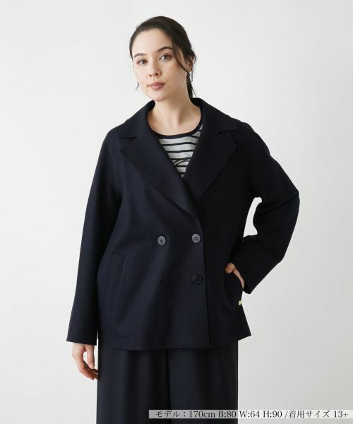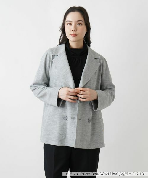肌当たりのよい柔らかな杢調のカットソー生地で仕立てたダブルブレステッドジャケット。アンカーボタンがさりげなくマリンを香らせるエッセンスに。緩やかにラウンドしたワイドなラペルが存在感を放ち、メンズライクな雰囲気を演出。すっきりとしたシルエットで着こなしやすく、様々なボトムスとバランスよくコーディネートできます。同素材のパンツとのセットアップコーディネートもおすすめです。