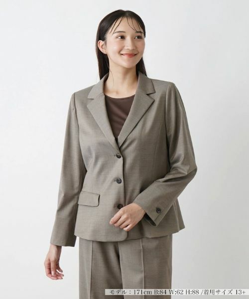 バックペプラムがほんのりと華やかさを引き立て、フェミニンムードを薫らせるブレザー。フロントはかちっとしたカラー&ラペルがマニッシュな雰囲気を作り、コントラストの効いたデザインとなっています。ウエスト周りを程よくシェイプすることで美しいシルエットを構築。オフィスからセレモニーまで多彩なシーンに対応する汎用性に優れた一着です。同素材のボトムスとセットアップでコーディネートするのもおすすめです。